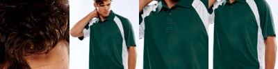 100% micro-polyester interlock • 4-oz. • moisture-wicking • snag-resistant • Relaxed Fit • raglan sleeves • flat-knit ribbed collar • half-moon patch • back neck tape • 3-button placket • open cuffs and hem • drop-tail • tagless • Sizes: S-4XL